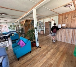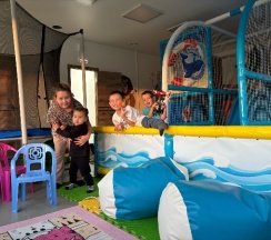 Отличное место! Отдыхали с друзьями и детками. Уличная детская площадка отличная, игровая просторная, есть и для взрослых развлечения (настолки, теннис). Бассейн однозначно стоит посетить, вода тёплая, дети в восторге. В кафе правда не успевали с подачей, было долгое ожидание, но в целом это не испортило впечатление.