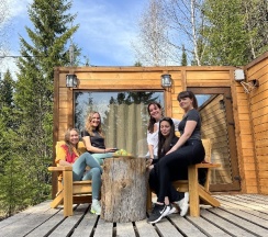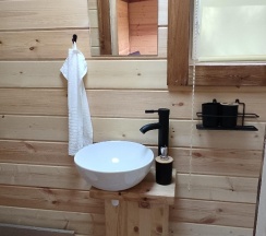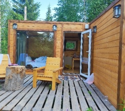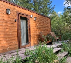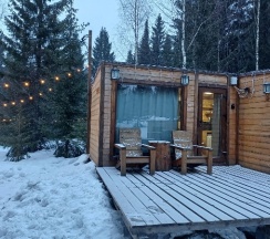 Шикарное место чтобы перезагрузится. Приезжали сюда именно для этого. Побыть в тишине, подняться на гору, отключить все телефоны. Получилось в итоге активное уединение. ГЛК белая совсем рядом, минут 5 и ты уже у бассейна. Туда тоже, кстати, ходили. Большой чистый и стоит копейки. Брали купель, сидели в теплой воде под гиганскими соснами и ощущение, что звездное небо здесь словно ближе. Все чисто, аккуратно, красиво. И удобно, что все домики так расположены - что ты не видишь и не слышишь соседей, что они тебя… А соседи точно были. В домике есть все, кастрюли, ложки, кружки. Даже средство для мытья посуды, хотя мы не сразу его нашли 😀, оказалось он встроен в раковину. Вообще видно, что все сделано качественно и не дешевые раковины, даже шампуни, мыло. Все в красивых тюбиках. И конечно вид из окна.. Приедем еще. Очень рекомендую. И да в «крепких кроватях» крепкий сон.. и очень удобные кровати)
