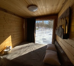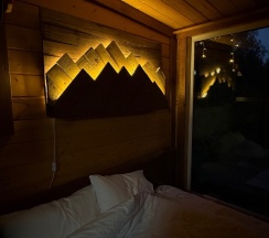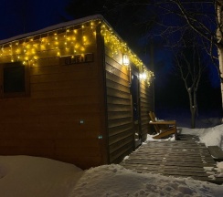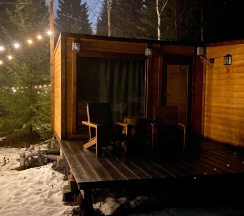 Отдыхали с мужем в домике Эльбрус, очень понравилось! Атмосфера непередаваемая словами, природа восхитительная! Сам домик очень уютный, кровать действительно очень комфортная, панорманые окна супер, засыпали с видом на ёлки в огоньках, просыпались с видом на ёлки в рассвете - уезжать не хотелось) Расположен очень удачно - до горы минут семь по тропинке через сказочный еловый лес, в общем впечатление от глэмпинга полный восторг! Обязательно приедем ещё)