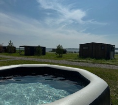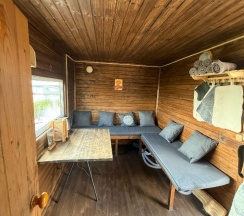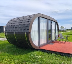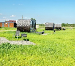 Чистые опрятные незамызганные домики разной квадратуры и разной вместительности. У каждого домика своя мангальная зона. Внутри домика есть все необходимые удобства - спальное место, санузел с водонагревателем, душем, раковиной и унитазом, кухонный уголок с микроволновкой, холодильником, чайником и необходимой посудой. Отдельно нужно упомянуть теплый пол в домиках и наличие кондиционера. Они очень выручают днем когда жарко и во время вечерней прохлады.