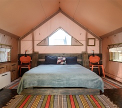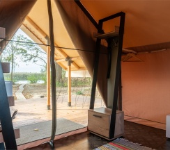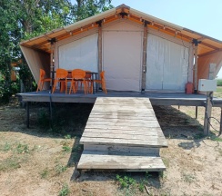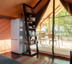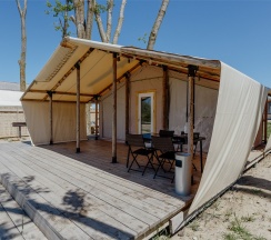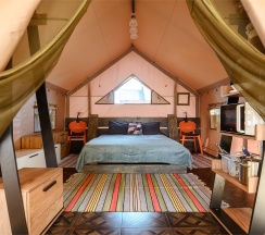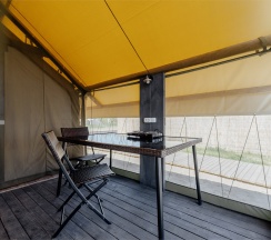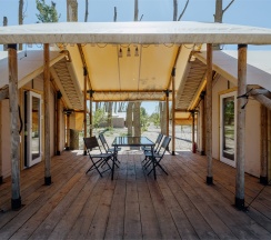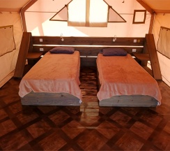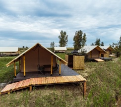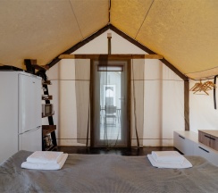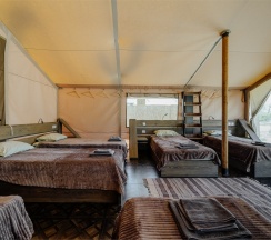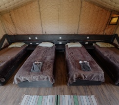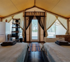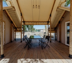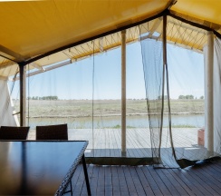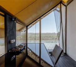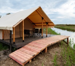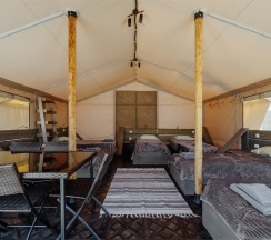Сафари-тент для Друзей отлично подойдет для компании на 4-х человек, в которой есть все для отдыха. Имеются 4-ре раздельные кровати, собственный санузел, зона барбекю и индивидуальный выход к пирсу для рыбалки.