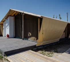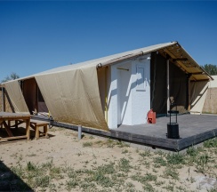 Тёплый вариант сафари-тента на 4 человек, который позволяет сохранять комфортную температуру при минусовой погоде. Сафари-тент оборудован теплым санузлом.