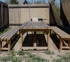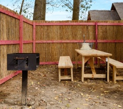 В распоряжении гостей мангальная зона, в номере — холодильник, микроволновая печь, чайник, посуда и кухонные принадлежности.