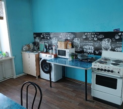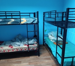 Чистая комната, душ, раковина. Тихо, комната с 4 двухэтажными кроватями. Кухня, все необходимое есть .400 рублей, матрас пружинный, удобный. Застряла в городе из-за бурана, не где было переночевать. Отдохнула,выспалась. Рекомендую