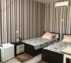 Трехместный номер стандарт с 1 двуспальной и 1 односпальной кроватью. В номере: холодильник, чайник, телевизор, кондиционер, место для хранения одежды и собственная ванная комната с душем.