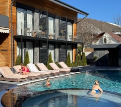 Отличное место для комфортного отдыха . Вежливый персонал , неимоверно уютный отель и шикарными видами на горы . 2 бассейна , баня , хамам , ресторан , все необходимое в пешей доступности .