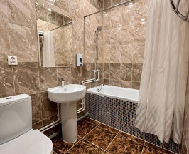 Номер улучшенный с 1 двухспальной кроватью. В номере собственная ванная комната с душем и туалетом.