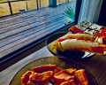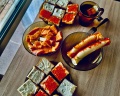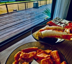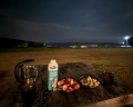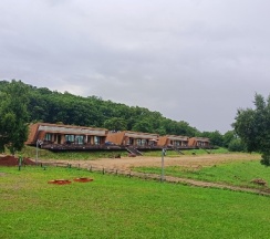 Бар-гриль. Мясо с овощами. Бармен Никита поёт под гитару у костра, есть караоке на открытом воздухе, лежаки, в номерах кондиционер.