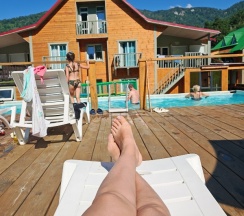 Отдыхали неделю в июле, но написать отзыв руки дошли только сейчас. Начну с того, что нам ВСЕ понравилось ) Почитала предыдущие отзывы, удивилась, что люди к таким мелочам придираются, недовольны, особенно на отдыхе. Ну да ладно - мы все разные ). Мы с семьей наслаждались солнцем, теплым бассейном и в принципе атмосферой на базе. Для детей целых 2 площадки на территории. Номер у нас был 26 с балкончиком. Вид на гору - просто супер! Особенно когда выходишь утром кофеек попить на балконе. Чистая территория на базе. Есть кухня летняя. Хочешь сам готовь, хочешь - кушай в кафе. Кафе очень выручало. Дети питались там с удовольствием, а им, как известно, сложно угодить ) Понравился отзывчивый персонал - от администратора до горничных. Девчонки стараются, работают. Уборку просили через день делать, так как у нас дети - приходили без проблем. Наводили чистоту.