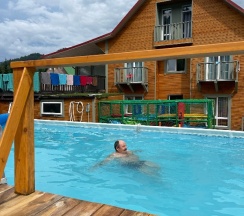 Администратору респект! Одна семья забронировала домик и так как домики располагаются чуть ниже основной территории, стало неудобно, что они вдали от нас. Анастасия быстро сориентировалась в ситуации и предложила альтернативу - двухкомнатный номер на основной территории. Не везде увидишь такой индивидуальный подход. Плюс персонал делает уборку каждый день - выносят мусор, приносят туалетную бумагу. По просьбе - влажная уборка бесплатно. На многих базах у нас в Иркутске - это дополнительеая оплата. Классно, что есть мангалы прямо рядом с беседкой и кухней. Все под крышей, защищено от дождя. Бассейном уже не пользовались, так как вода была уже прохладная, но на террасе загорали. В общем все было классно!