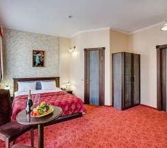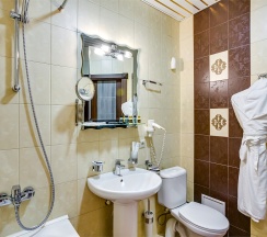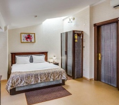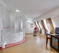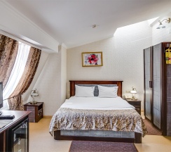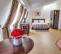 Мансардный номер, выполненный в романтическом стиле, подарит незабываемые мгновения. Уникальная изюминка интерьера - угловая ванна на подиуме, которая создаёт атмосферу уюта и расслабления. Санузел дополнительно оборудован душевой кабинкой, что добавляет удобства. Этот номер станет идеальным выбором для молодоженов и всех, кто хочет провести время в романтическом окружении. В номере расположена одна двуспальная кровать, а каждому гостю предоставляется комплект из 2-х полотенец. Для вашего досуга предусмотрен телевизор. На всей территории отеля доступен бесплатный WI-FI, а в качестве приятного комплимента ждут кофе, чай и сахар. Наслаждайтесь комфортом!