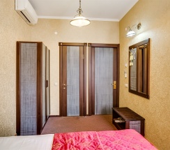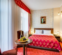 Двухместный номер площадью 27 кв.м идеально подходит для комфортного проживания двух человек. Номера данной категории расположены на третьем этаже, что обеспечивает тихую и уединённую обстановку. Внутри находится уютная двуспальная кровать, создающая атмосферу романтики и уюта. Каждому гостю предоставляется комплект из 2-х полотенец для максимального комфорта. В номере установлен телевизор для вашего досуга, а на всей территории отеля доступен бесплатный WI-FI, что позволит оставаться на связи. В качестве приятного комплимента отель предлагает кофе, чай и сахар, чтобы ваше пребывание было еще более комфортным и приятным.
