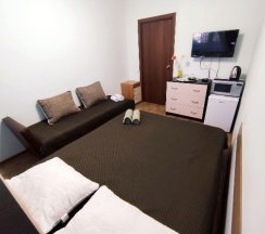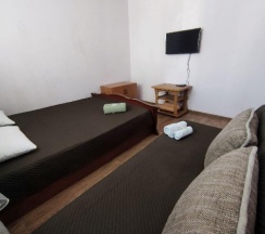 Гостиница-апартамент хорошее место ночевали с 12.09-13.09 в номере 5 понравилось всё. Кровать большая хорошая. Есть место для машины. Кухня отдельно и хорошо сформированная зона со всем оборудованием. Минусы есть(нет полотенца для ног в душе, прикроватный пинал стянуть винтами-рассохся. А так хороший выбор. Рекомендую сообществу!👍