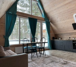 Проживали неделю в декабре) Очень уютный, стильный и комфортный дом, есть всё необходимое (посуда, фен, утюг, стиралка, сауна в доме и т.д.). Красивый вид на гору. На такси близко до подъемников и баров. Отличные хозяева, помогут при необходимости)