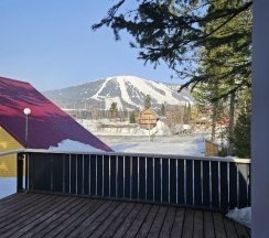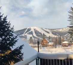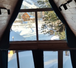 Отличное местоположение, сам дом оборудован всем необходимым, все новое. От горы недалеко, а из окна домика прекрасный вид на один из склонов.