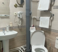 Нас расселили в эту гостиницу при задержке вылета вертолёта на Шикотан. Очень отзывчивые, добрые администраторы работали в смену 15.07 и 16.07! Помогли нам связаться с Тайгой, решили все вопросы по заселению. Заселили нас в просторный номер с широкой кроватью и с санузлом, в наличии были халаты и комплект полотенец. Номер отличный.