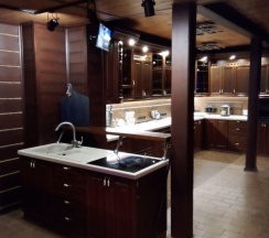Большая кухня, 2 огромных холодильника и 3 больших стола. Чисто.