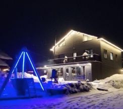 Хороший вариант для большой компании. Удачное месторасположение. Дом очень теплый, большая зона отдыха на первом этаже. Вмещается в доме 25 человек. Есть небольшая комната для снаряги, на 1эт теплый пол👍🏻 Из минусов - плохая шумоизоляция, не во всех комнатах были полотенца, не было средства для мытья посуды в кухне, но есть посудомоечная машина, это плюс.
