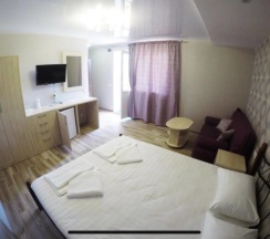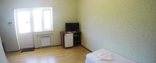 Номер расположен на втором этаже, с видом на горы, бассейн и внутренний дворик. Площадь номера 20кв. С одной двухспальной кроватью 160*200 см. и дополнительным местом еврораскладушка 70*190см. номер оснащён всем необходимым: телевизор, кондиционер, холодильник, фен, постельное белье, комплекты полотенец, мыльные принадлежности и т.д.