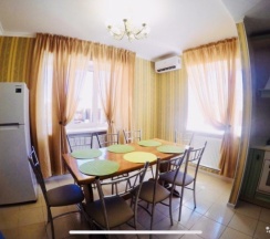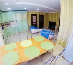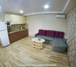 Апартаменты со своей кухней, посудой, микроволновой, плитой, духовкой, электрическим чайником, холодильником, обеденной зоной, ванной комнатой и принадлежностями. вместимость до 5 человек
