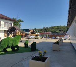 Чистая, уютная гостиница. Доп место- большая удобная раскладушка. Вид отличный на горы. Есть столовая, нужно заранее заказывать завтраки, обеды. Нам не зашло. Некоторые, видели, постоянно заказывали. Недостаточно чисто по мне. Из такой столовой можно было бы сделать шведский стол. И не надо было бы ходить в столовую напротив. Из-за столовой снимаю звезду. Магнит напротив 24 часа. Супер!