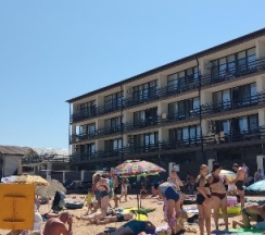 Замечательное место. Море рядом. Добавить нечего. Бронировали номер на 3 этаже с видом на море. Белоснежная постель. Кухонная утварь. Полотенца. Питание самостоятельно. Есть возможность заказа комплексных обедов. 500 рублей. Вкусно. Первые этажи с видом на море по мне слишком шумные. Все ходят через зону кухни ( она расположена на 1 этаже). Мангал. Бассейн небольшой. Скорее детям. Парковка для гостей 3-4 этажей минут 7 ходьбы. Парковка двухэтажных номеров на территории. Лежаки отеля на пляже деревянные. Краны для смыва песка с ног. Теневая сторона как раз на зону до груди. Пляж чистый. Лежаков и зонтиков муниципальных нет. На территории есть небольшой магазинчик. Пиво, воды, сладости, закуски к пиву. Хозяйка Татьяна приятная девушка. Заказывали на улов осетра. Свежая рыба на мангале 🥰. Для детей нет развлечений. Но, в нашем случае, моря достаточно. Из минусов: хотелось бы отдельные полотенца для пляжа. Администратор Али всегда был на связи. Бронь Вера милая, приветливая девушка. Девочки персонал очень обаятельные. Однозначно к посещению. Вопрос только в цене.
