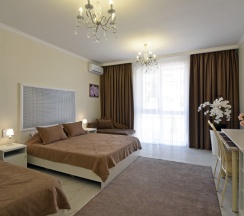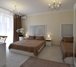 Этот просторный трехместный номер идеально подойдёт для небольших семей, друзей или тех, кто ценит удобство и комфорт. Оформленный в светло-бежевых тонах, номер создаёт атмосферу уюта и покоя, предоставляя все условия для приятного отдыха.