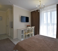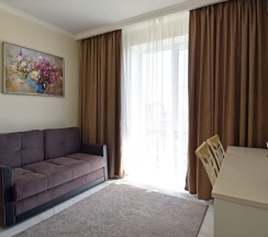 Этот номер идеально подходит для тех, кто ищет комфортное пространство для отдыха или работы. Вдохновляйтесь природой и тихим уголком Азовского побережья, отдыхая в уютной обстановке, созданной для вашего удобства.