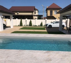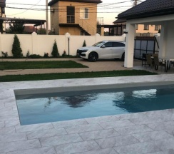 Террасса - шикарная. Бассейн - прекрасный. Есть мангальная зона. Всё в цветах, газонная травка. Кресла капли, игрушки для детей и главное: уличный душ обмыть ноги после моря. Кстати, море в 3 мин ходьбы! Вообще, пост сумбурный получился, но это от избытка эмоций. Наша семья в таком восторге от условий, сервиса и хозяев с администратором! Искренняя благодарность за такой уют! Процветания вам и оставайтесь, пожалуйста, всегда на уровне!