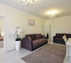 Этот просторный двухкомнатный номер идеально подойдёт для большой семьи или группы друзей, предлагая комфорт и уединение. Каждая из изолированных комнат оборудована всем необходимым для полноценного отдыха. Оформленный в светло-бежевых тонах, номер создаёт атмосферу уюта и спокойствия.