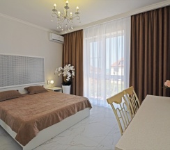 Фото и видео нет, т.к некогда было - просто кайфовали! Восторг неописуемый! Даже делиться не хочется, чтоб поменьше народу знало о таком ШИКАРНОМ месте! Всё просто на высоте: чистота, уют, комфорт и все все условия для проживания с детками и без. Мы жили в двухкомнатном номере, 4 человека. Все стилизовано, продумано, компактно и качествееннно. Есть маленькая кухонька с качественной посудой и чистящими средствами, гладильная доска и утюг тоже имеются. В санузле два мыла: одно в форме розочки (дочь затребовала его забрать домой) и жидкое. Полотенец достаточно. Имеются средства для уборки комнат.