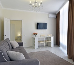 Этот просторный двухкомнатный номер идеально подойдёт для тех, кто ценит уединение и комфорт в отдыхе. Каждая из изолированных комнат обеспечивает максимум удобства для всех гостей. Оформленный в светло-бежевых тонах, номер создаёт атмосферу уюта и расслабления.