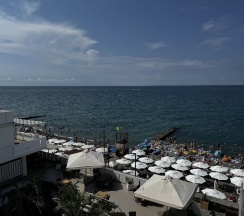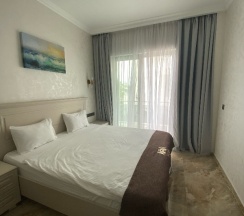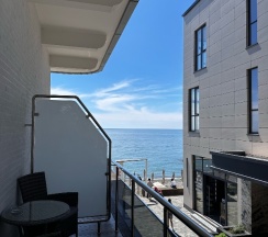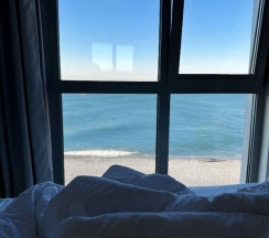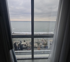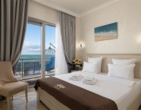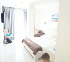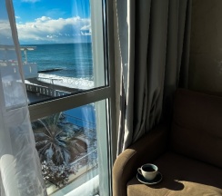 Хороший номер с прекрасным видом на море. Пляж рядом,шезлонги в доступе. Есть выход на террасу где можно посидеть.