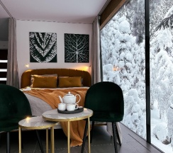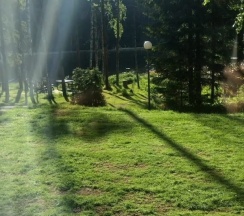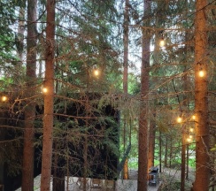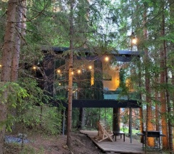 Сказка! Уезжая с серого Питера даже не думали попасть в такую сказку!!!! В лесу находится уединенная база с очень стильными домиками. Мы останавливаюсь с доме с террасой на которой есть своя мангальная и кресла. В доме есть все что необходимо от всей посуды, холодильник, чайник до всех необходимых душевых наборов (халаты, средства личной гигиены, мыло). На территории базы нет интернета, что позволяет полностью отключиться от реальности и посветить время себе и своим близким.