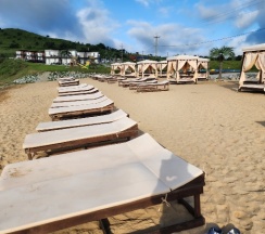 Это лучшее место отдыха в Хасанском районе! Жили в гостинице, думали будет шумно от администрации, но отдых прошёл идеально, шум волн ночью, утром завтрак, днем прекрасный пляж и море. Немного расстроило, что кровати (топчаны) на пляже за дополнительную плату, это показалось странным. Большая ухоженная территория. Беседки для жарки шашлыков в отдалении, чтобы не напрягать других гостей запахом костра. Прекрасный бассейн с подогревом и подсветкой, можно купаться прохладным вечером, расслабляющая музыка, там просто приятно посидеть вечером. Само место располагает к спокойствию и расслаблению и мне это понравилось, вернусь обязательно в следующем году!