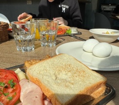 Расположение тоже достаточно удобное . Завтраки хорошие , сытые !