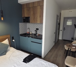 Идеальный вариант для комфортного отдыха и наслаждения центром города. Небольшие, уютные, современные номера. Со своей миникухней и набором посуды. С отличным сервисным обслуживанием. В центре города. Да ещё по отличным ценам. Буду брать ещё.