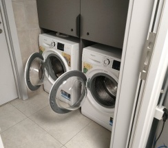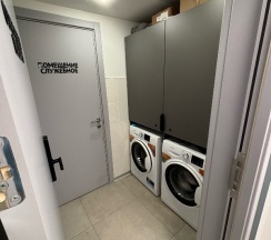 Есть спец комната где расположены стиральные машины , утюг .