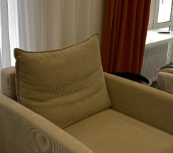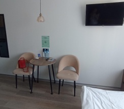 В номере также был небольшой столик и два кресла. Кровать была удобная, вдвоем поместились. Матрас мягкий.