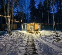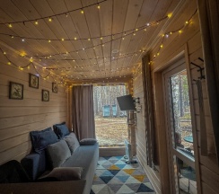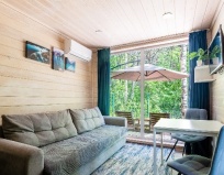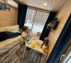 Домики уютные и хорошо оборудованные — всё продумано для комфортного отдыха. Особенно понравилась возможность проснуться под пение птиц, прогуляться по лесу. Внутри чисто, есть все необходимое для комфортного проживания: кухня, удобная мебель и уютная атмосфера.
