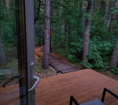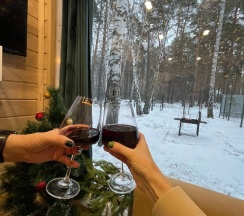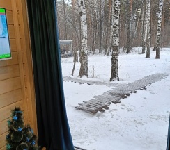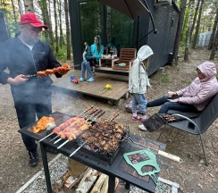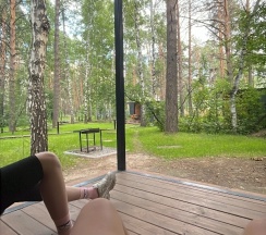 Мне понравилась база. Домики расположены на достаточном отдалении друг от друга, поэтому удаётся насладиться окружающими деревьями и пространством. Тот же вид открывается из спален, благодаря панорамному остеклению. Номера уютные, функциональные и чистые. В номере есть посуда, печь, кастрюля и сковородка, с помощью которых мы готовили простые блюда. Очень не хватает мойки ног от обского песка, но мойка в настоящий момент строится. К сожалению, мы не готовили в мангальной зоне, надо не забыть шашлыки или рыбу в следующий раз.