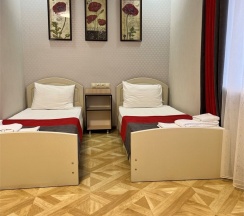 Двухместный номер с двумя односпальными кроватями и со всем необходимым для комфортного проживания гостей.