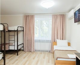 Четырехместный номер с двуспальной кроватью и двумя односпальными