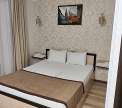 Однозначно рекомендую! Удобное расположение отеля для тех кто собирается в аэропорт (вылет/прилет). Для отдыха. Спальный район. Парковка рассчитана на три универсала. За периметром отеля можно найти временное парковочное место "местного жителя". Отель три этажа. Чисто, приятно пахнет ароматизатором. Мне достался номер 9, второй этаж. Отлично убранный номер, чистая сантехника, мыльные принадлежности, белое отглаженное постельное белье (без дыр, пятен, потёртостей), чайник, посуда для чая, набор чайно - кофейный. Бутылочка воды. Приветливая дежурная на ресепшене, у нас был поздний заезд, встретила, рассказала об условиях проживания. Своей кафешки нет, заказывали ужин доставку курьером из хинкальной. Приятный, уютный отель.