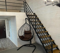 На 2 этаже дома располагается большой 2-местный номер 40 кв.м. Это одна комната–студия 5/8 кв.м с прихожей. В номере есть зона отдыха с диваном, креслами и столиком, спальная зона с двумя кроватями, ТВ, сплит-система и санузел (туалет и душевая кабина).