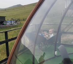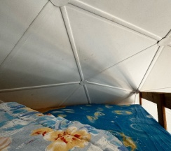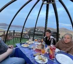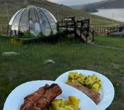 Отдыхали в июле 2025 в куполе с беседкой. Остались очень довольны. В нашем куполе возле окна связь Теле-2 ловила, можно было связаться с родными. В беседке есть вся необходимая посуда. Мы всё готовили себе сами и кушали наслаждаясь видами Байкала. До Байкала 300 метров и он в июле оказался очень теплым. Очень понравилась баня. Спасибо вам за наш чудесный отдых!