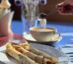 Размещение в домике с беседкой (плюс бассейн, газовый гриль, качели только для нас), превосходный вариант на 4-х человек. Персонал в целом и администратор Екатерина в частности выше всяких похвал! Если приезжаете туда как мы с запасом продуктов на время отдыха, все же возьмите завтраки!!! Не пожалеете! Буузы можно заказать в любое время и они стоят того.