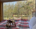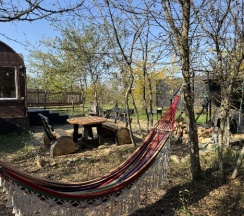 Великолепное место для романтического отдыха на природе. Огромный подогреваемый чан поможет расслабиться в любую погоду. Панорамные окна добавляют особый шарм отдыху. В домике все продумано до мелочей!