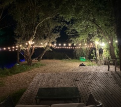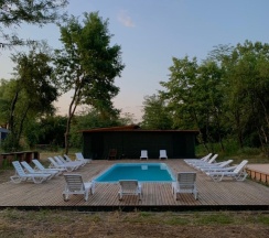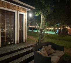 Суперское место! Отдохнули на ура. Бронировали домик на двоих, домик находится в самой глубине территории, никого вообще вокруг, уединение и тишина. Домик уютный, очень чистый, белоснежное постельное, полотенца для душа и для бассейна, халаты. Вся посуда, микроволновка, печка, холодильник. Возле домика чан и столик с креслами, ужинали и завтракали в тени под пение птиц. Кровать возле панорамного окна это просто восторг! Всю ночь пели сверчки. Бассейн чистый, лежаки удобные. Жаль только после 20ч нельзя поплавать) ходили гулять по тропе здоровья до дальнего озера в лесу, красиво и интересно. На территории тоже озеро, на берегу кресла, можно полюбоваться утками и цаплями. При выезде подарили сертификат на скидку, очень приятно. Всем рекомендуем и обязательно вернемся!