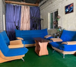 Дети до 5 лет проживают бесплатно. В номер ведет отдельный вход, на общей террасе набор мягкой мебели, силовой и эллиптический тренажеры. Кухня для самостоятельного приготовления, чай и кофе включены в проживание. Душ/туалет в холле.